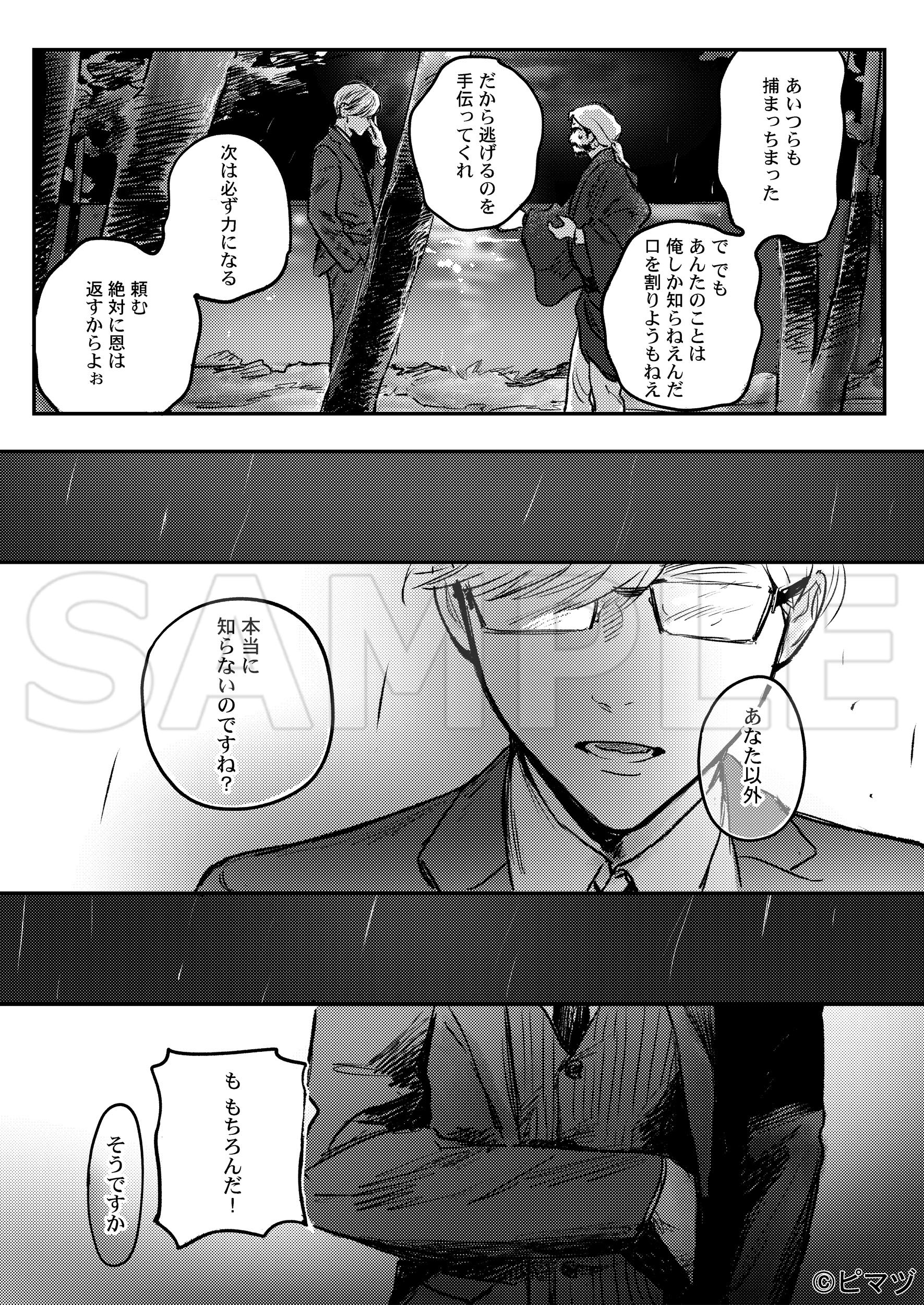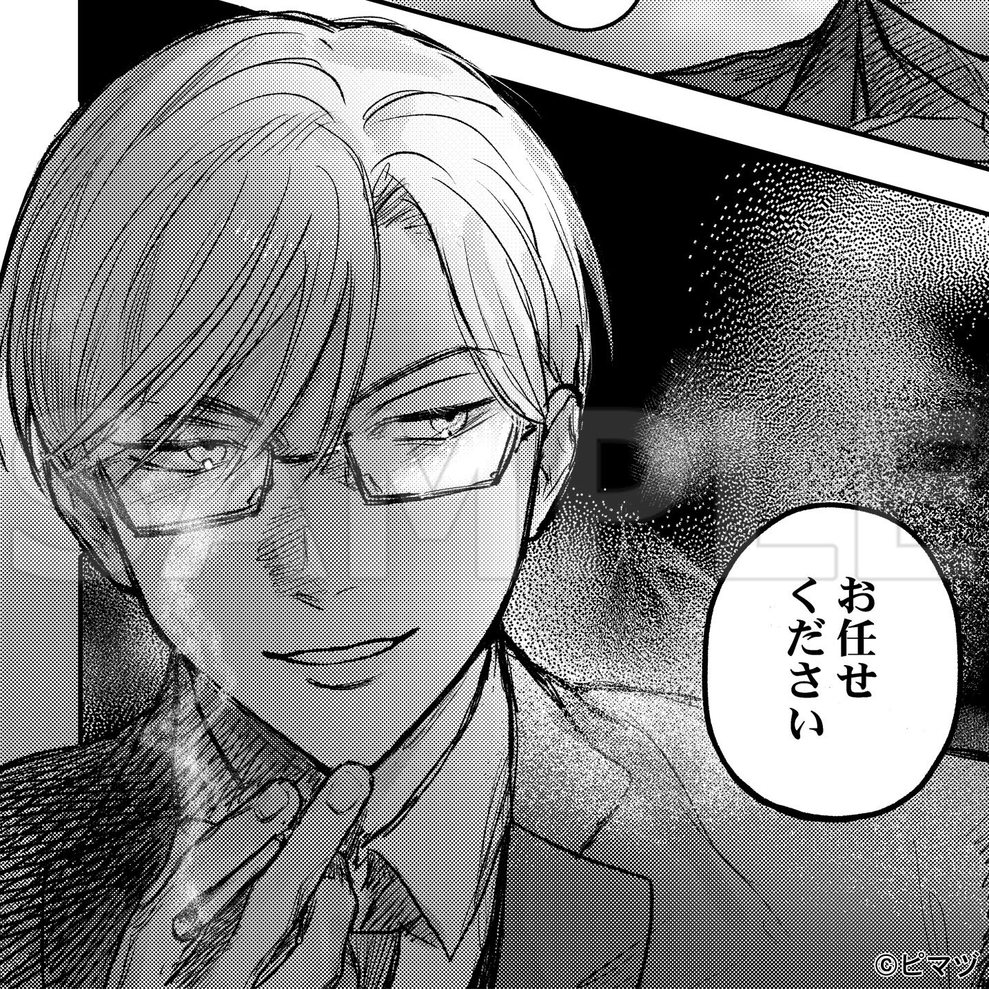 七三眼鏡が最高で、煙草もめちゃめちゃ似合いますね…ピマヅ先生の演出力が存分に発揮されています。